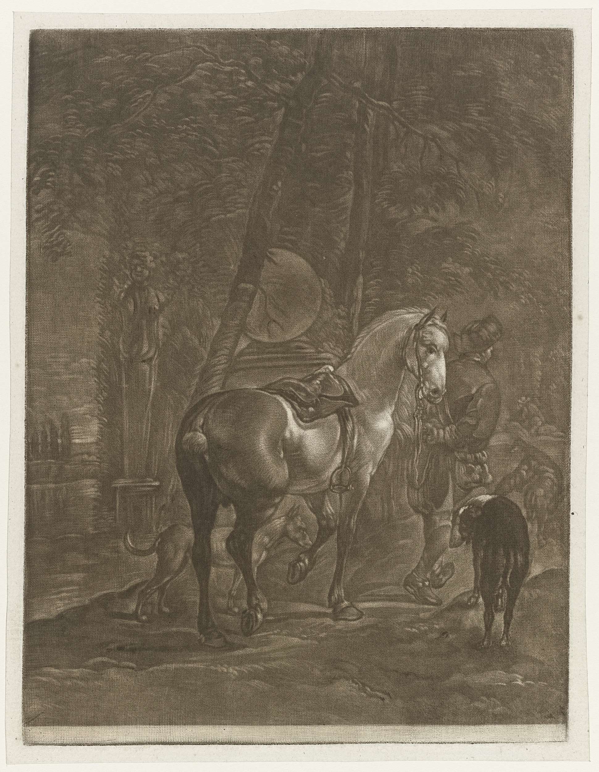 Man met een paard en honden