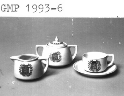 5-delig servies met wapenschild van Leeuwarden, mode...