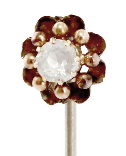 Zilveren dasspeld met briljant en pareltjes