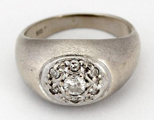 Zilveren ring breed uitlopend met briljant in gezet