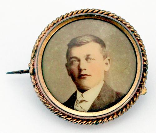 Gouden medaillon, draagspeld van goud met achter gla...