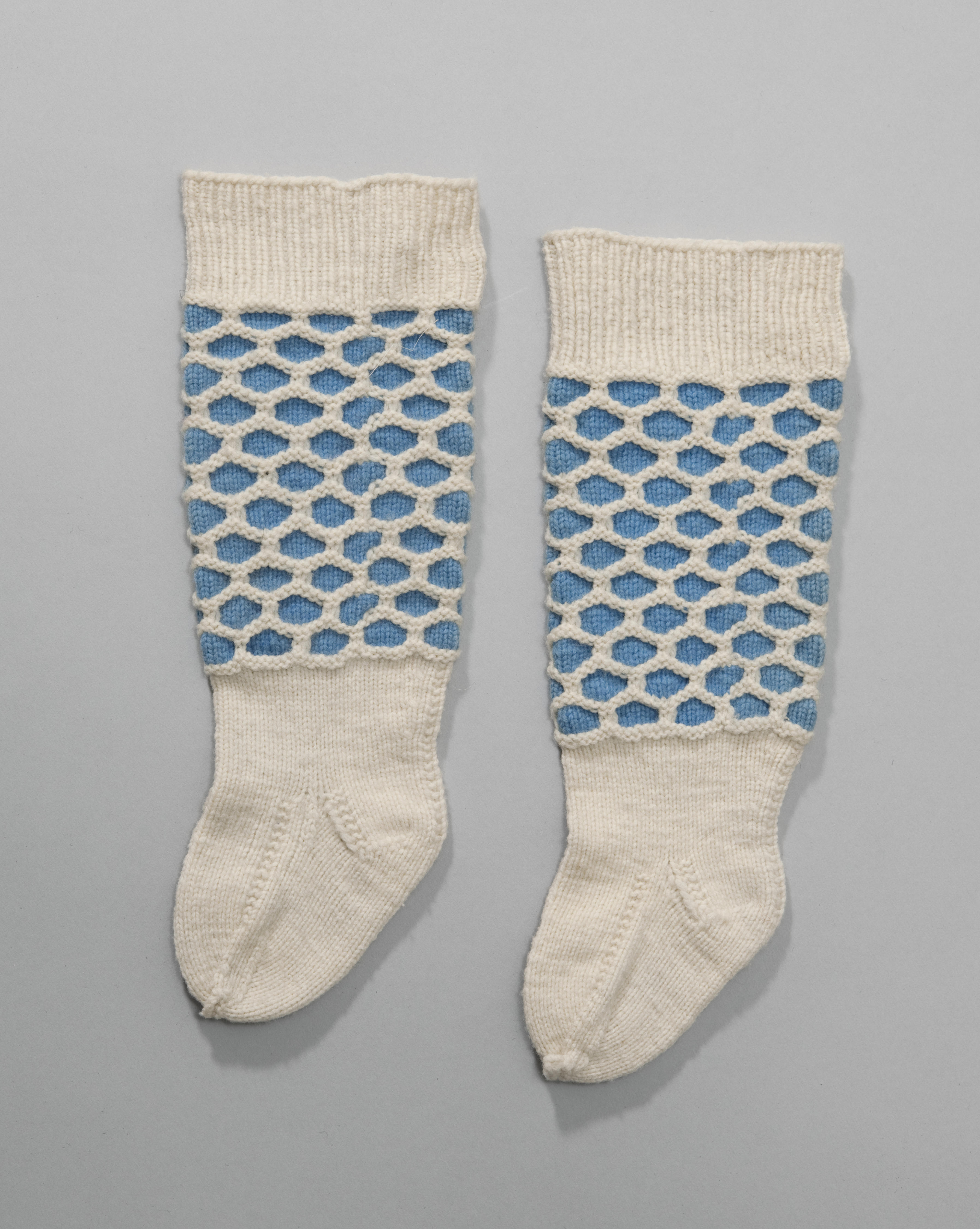 Paar tweekleurige kinderkousen, Cadzand, voor 1973
