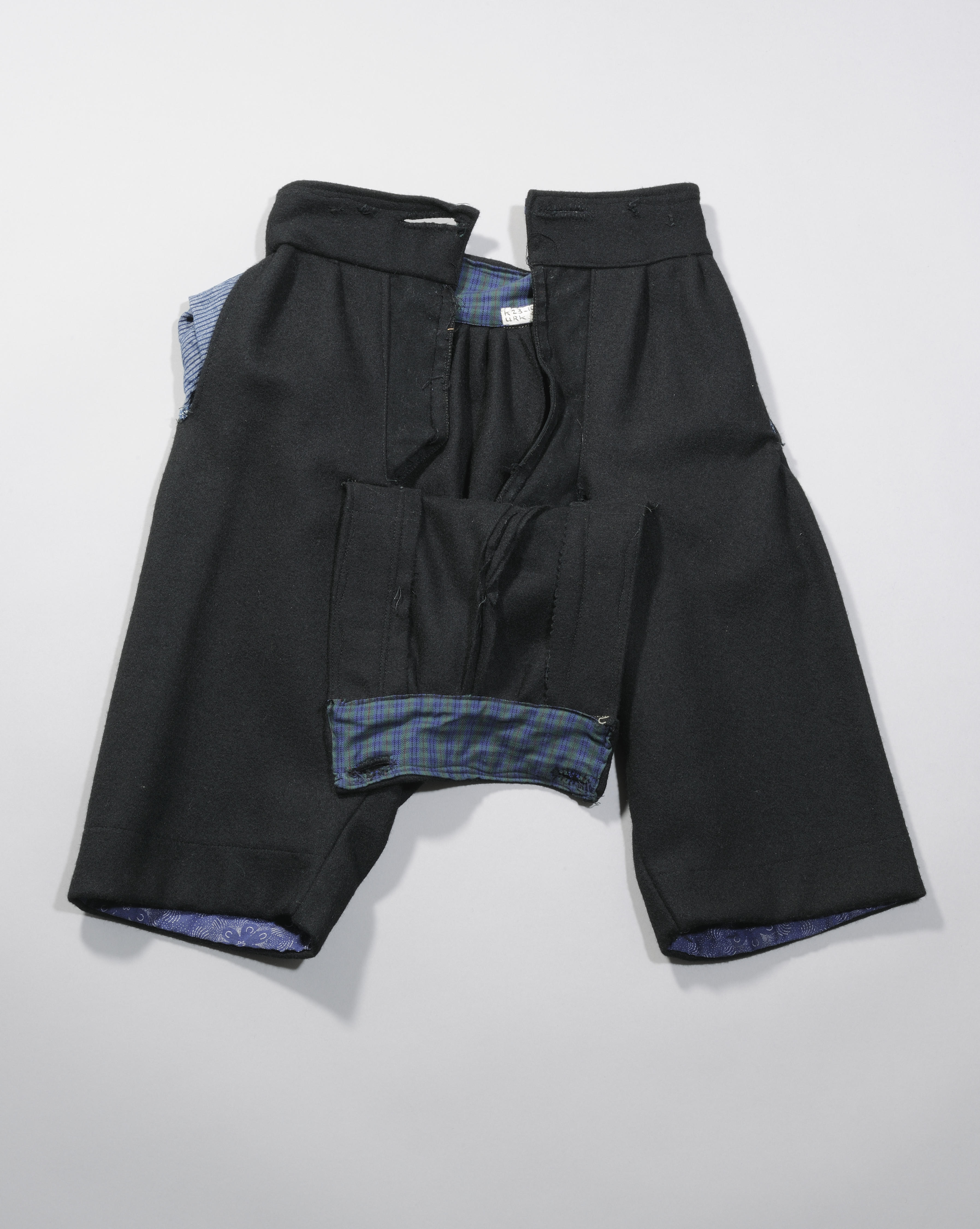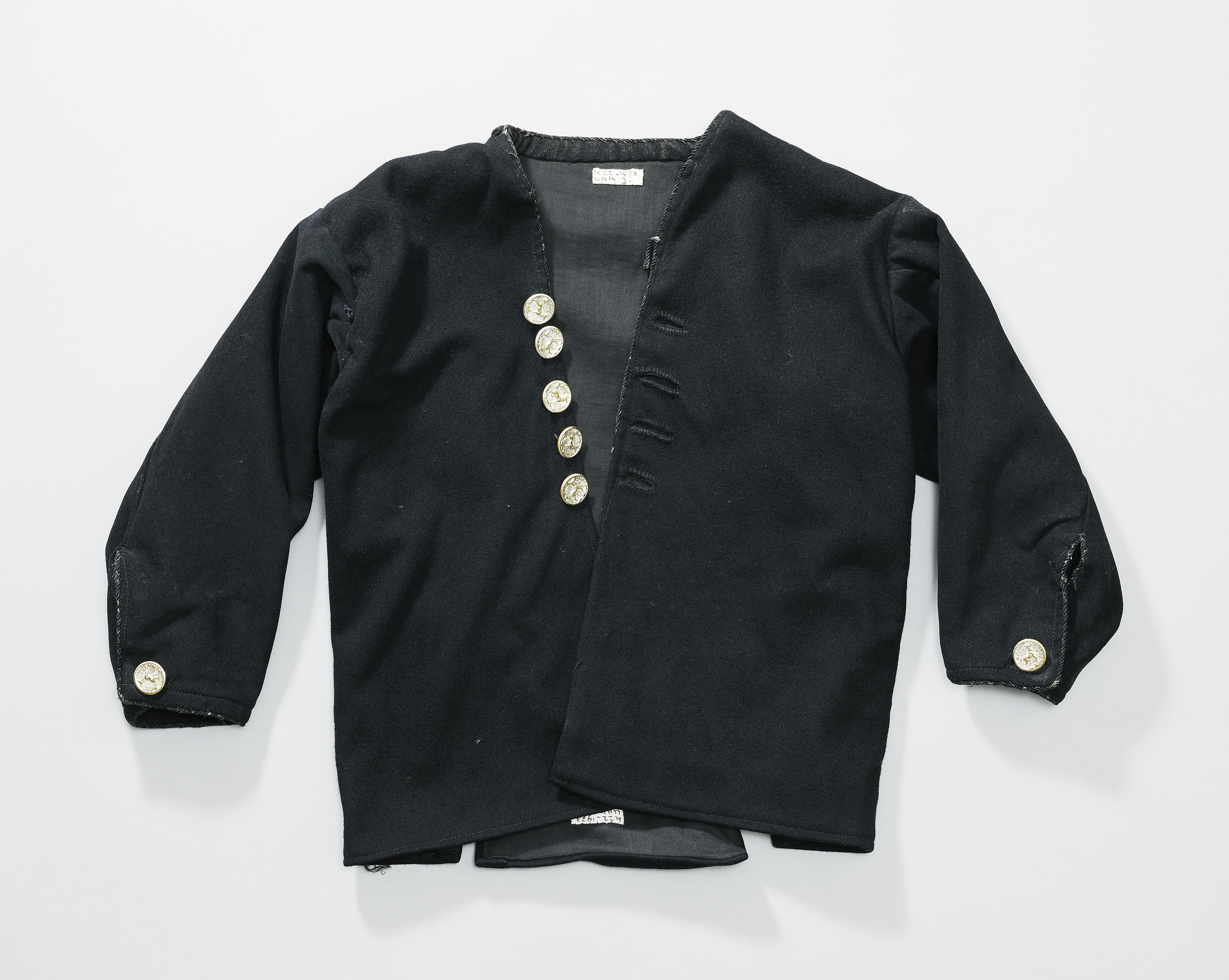 Paar handgebreide zwarte wollen jongenskousen, Urk, ...
