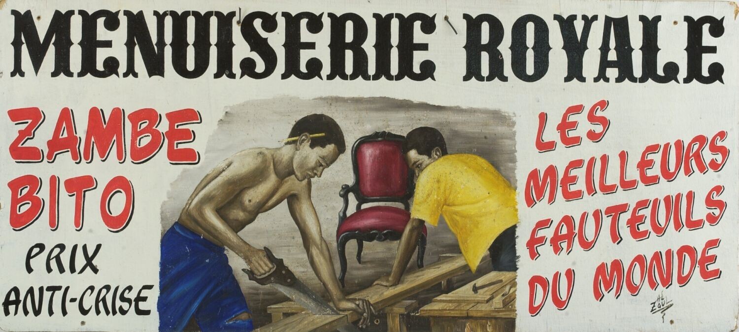 Reclamebord van meubelmakerij 'Zambe Bit O' ('Stoele...