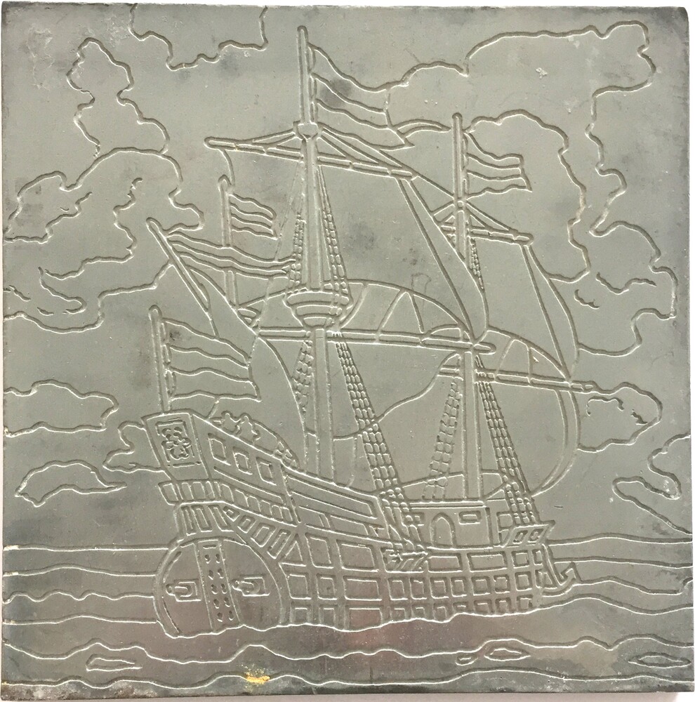 tegel van aardewerk in onderglazuur, voorstellende: ...