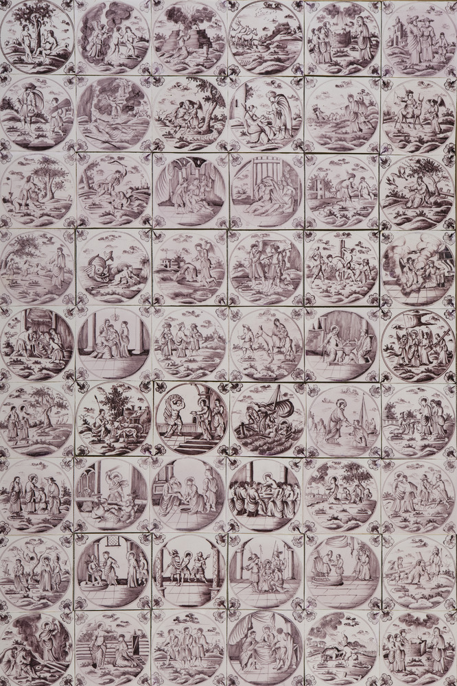 Tegel van keramiek met tinglazuur, voorstellende: de...