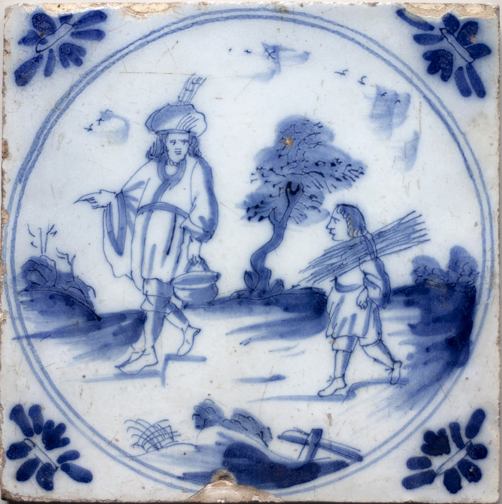 tegel van aardewerk in onderglazuur, voorstellende: ...