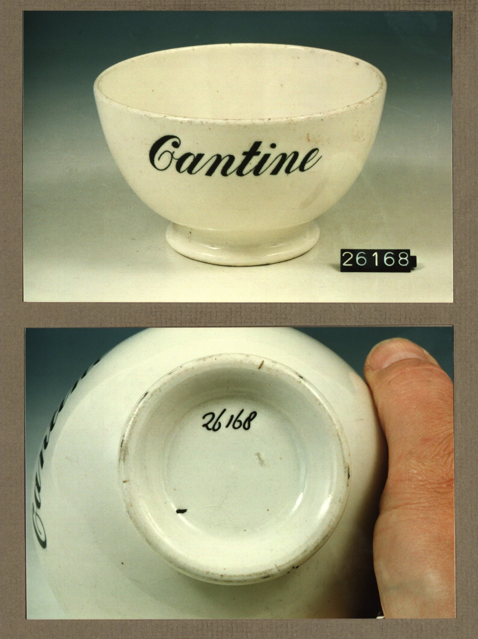Kom met opschrift, model Gewoon met decor Cantine