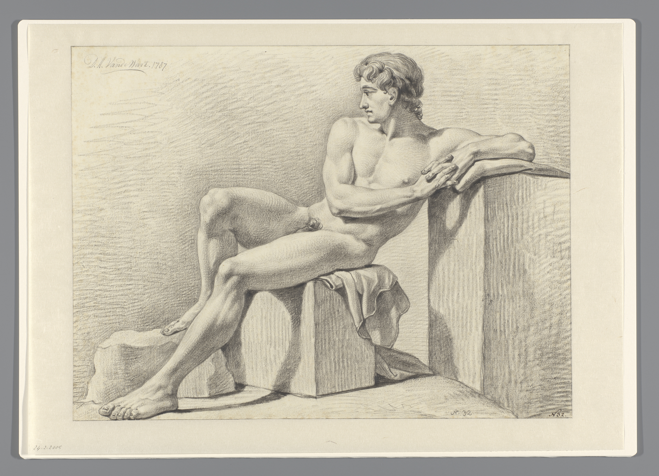 Zittend mannelijk naakt, naar rechts