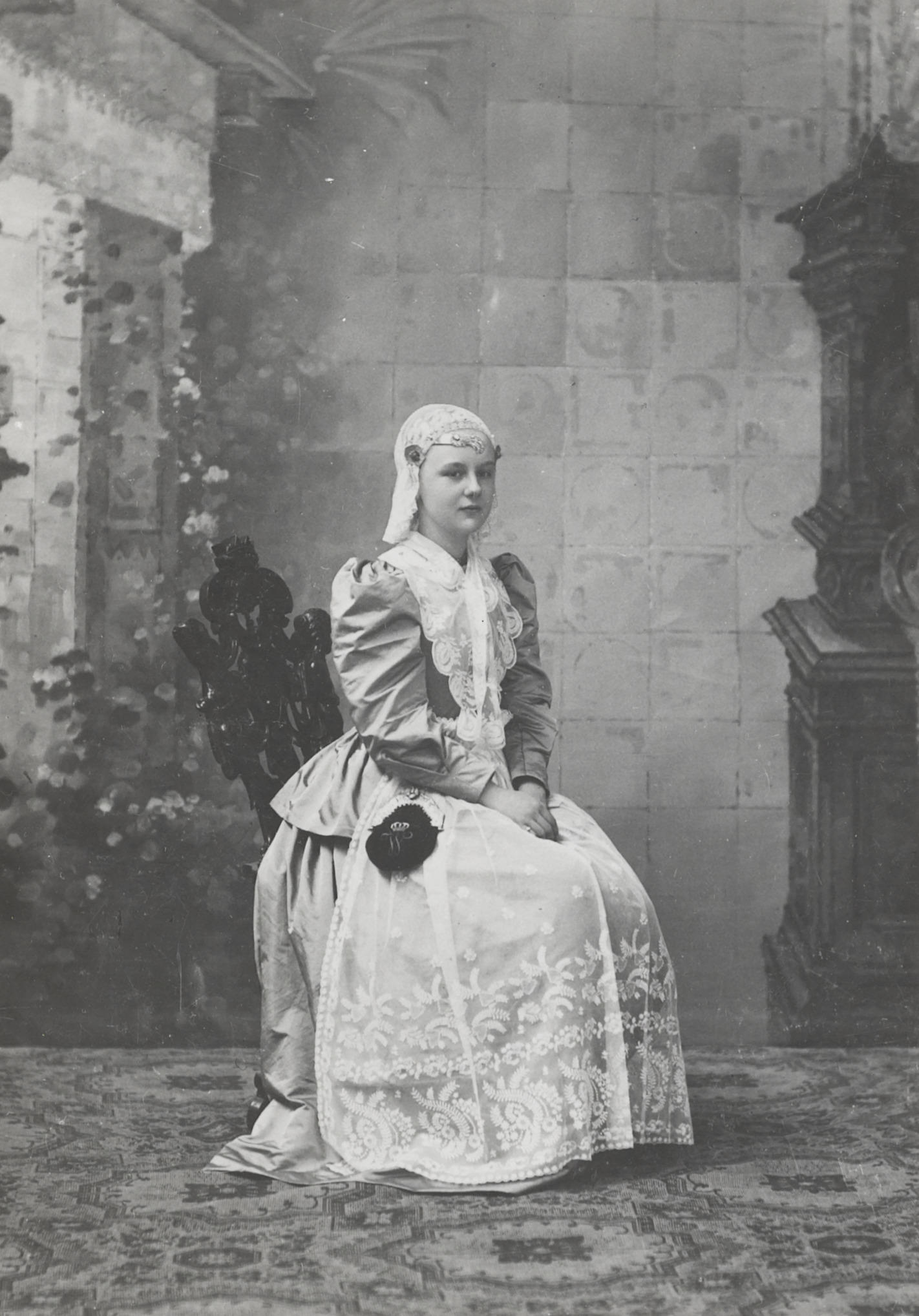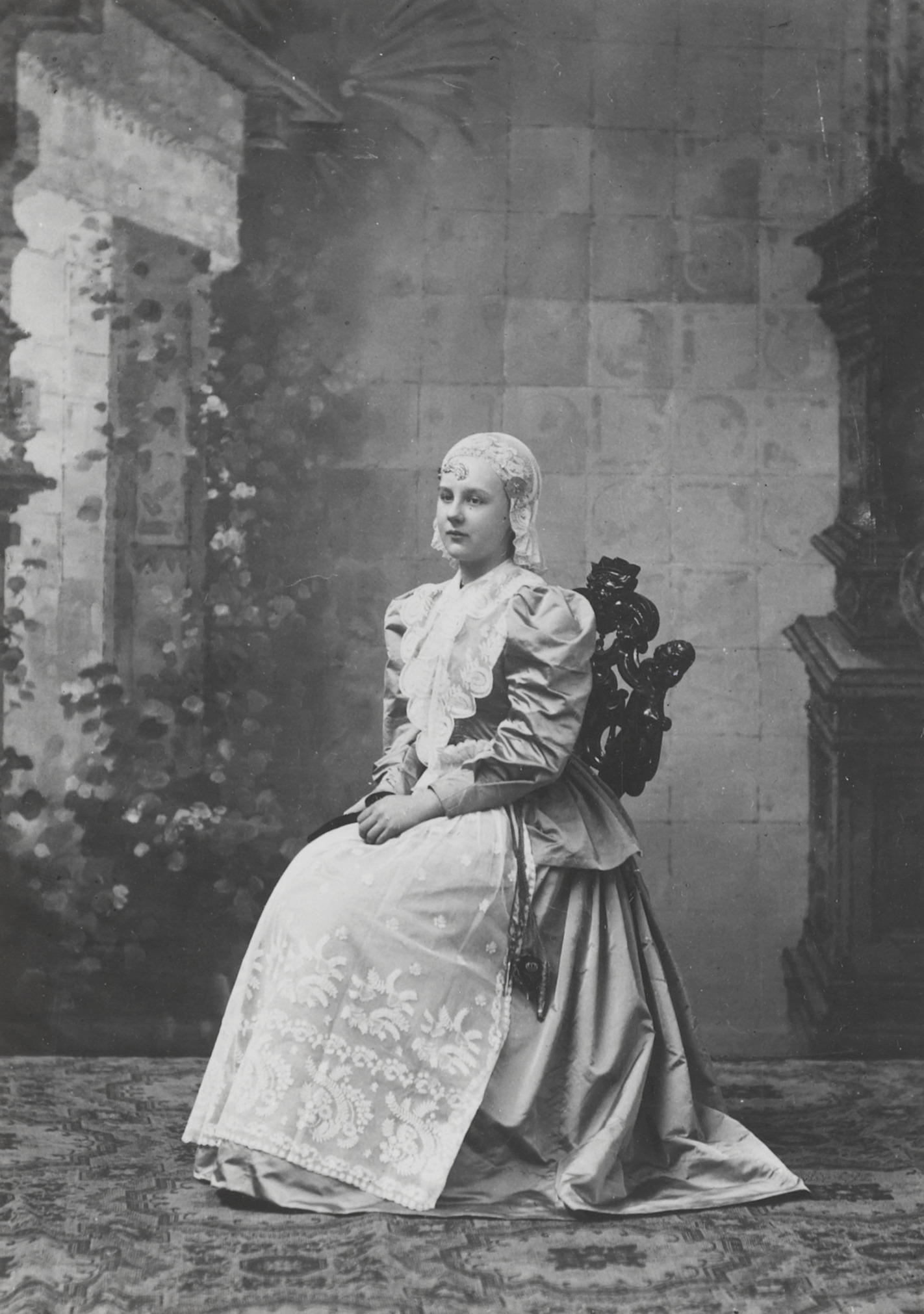 Koningin Wilhelmina in Friese dracht, 1893 (zwart-wi...