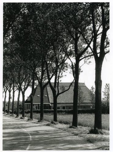 Foto in zwart-wit van een kop-rompboerderij met stoo...