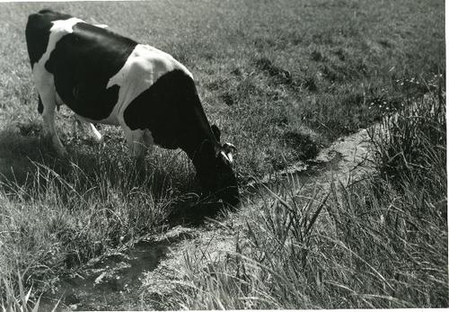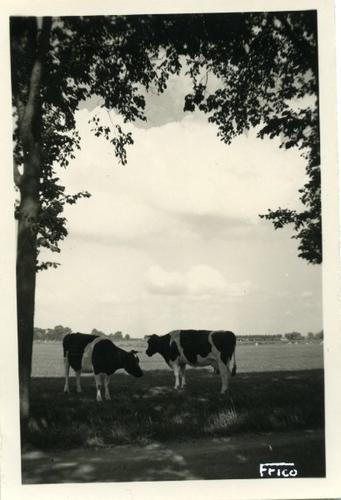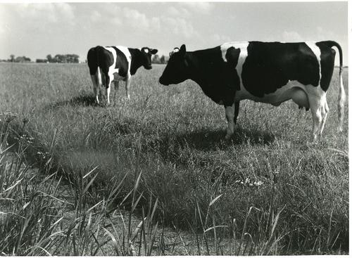 Foto in zwart-wit van twee koeien in de wei door J.D...