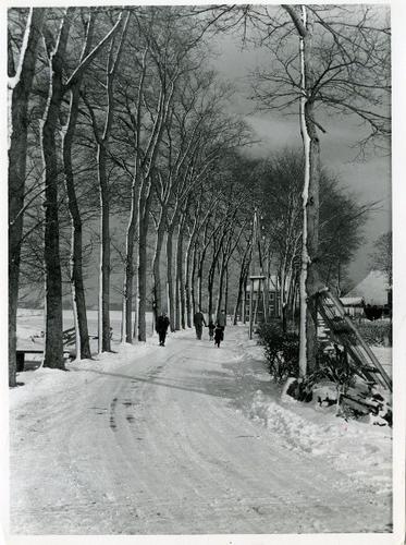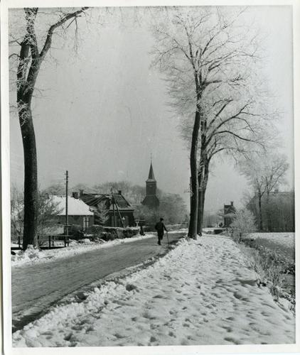 Foto in zwart-wit van een winters dorpsgezicht door ...
