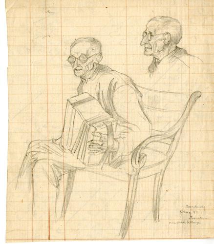 Tekening met potlood van een gezicht op Tzum door Sj...