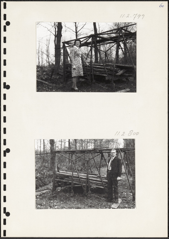 Foto van Nederlandse vrouw bij skelet Amerikaans Wac...