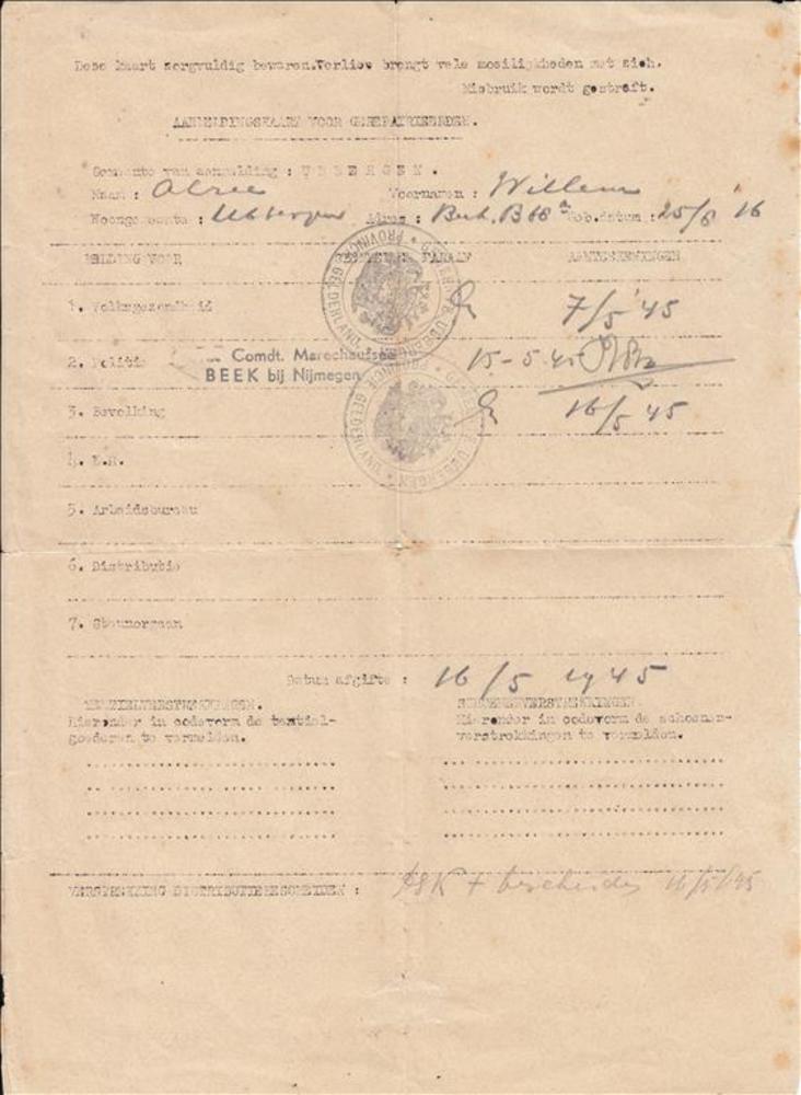 Aanmelingskaart voor gerepatrieerden, Willem Olree