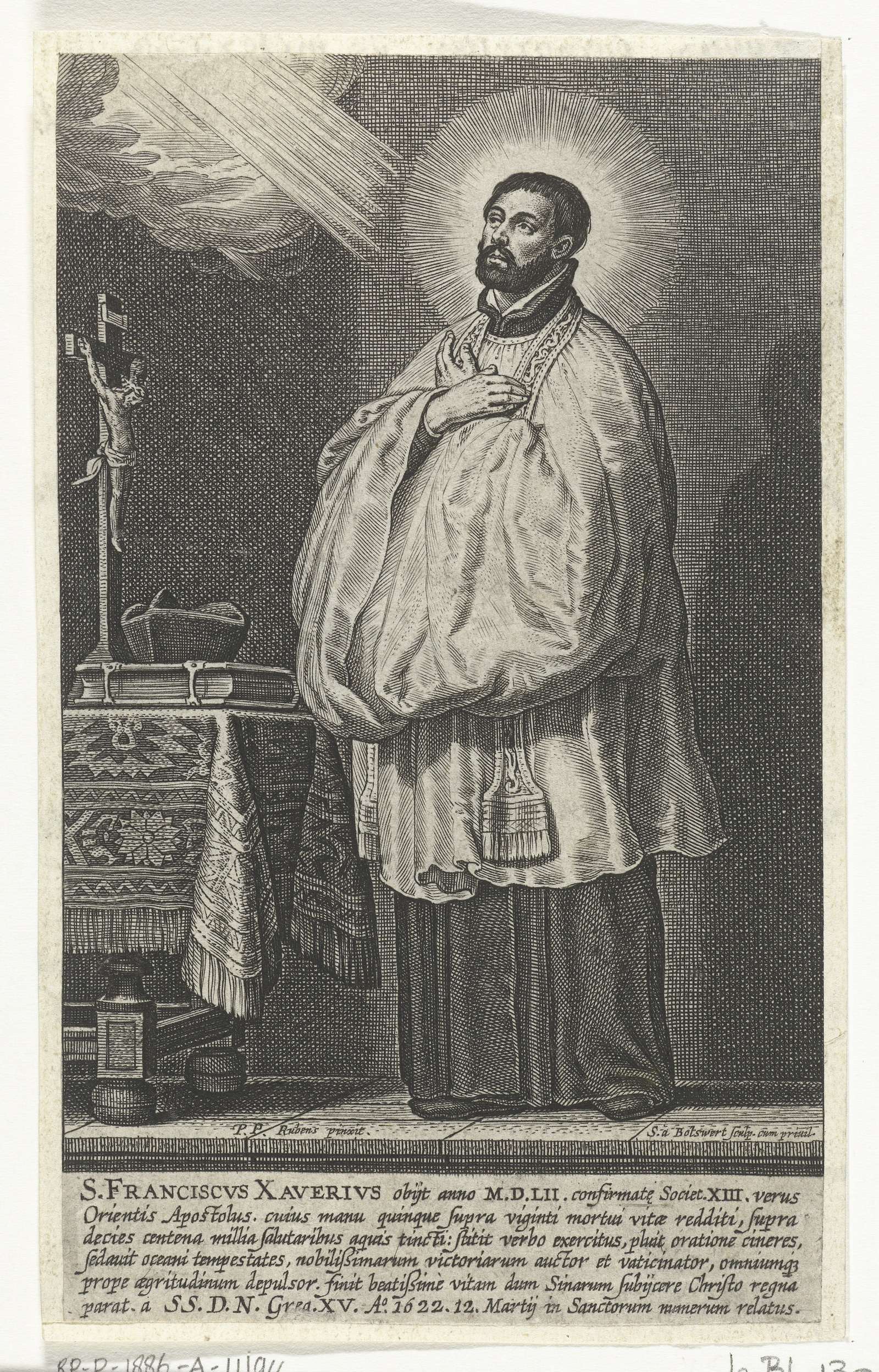 Heilige Ignatius de Loyola aanbidt IHS monogram
