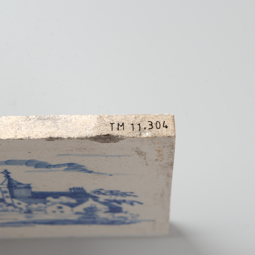 Tegel van keramiek met tinglazuur, voorstellende: wa...