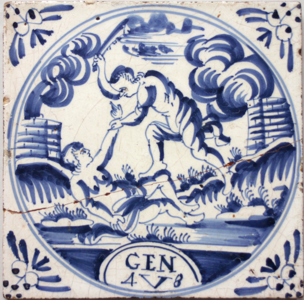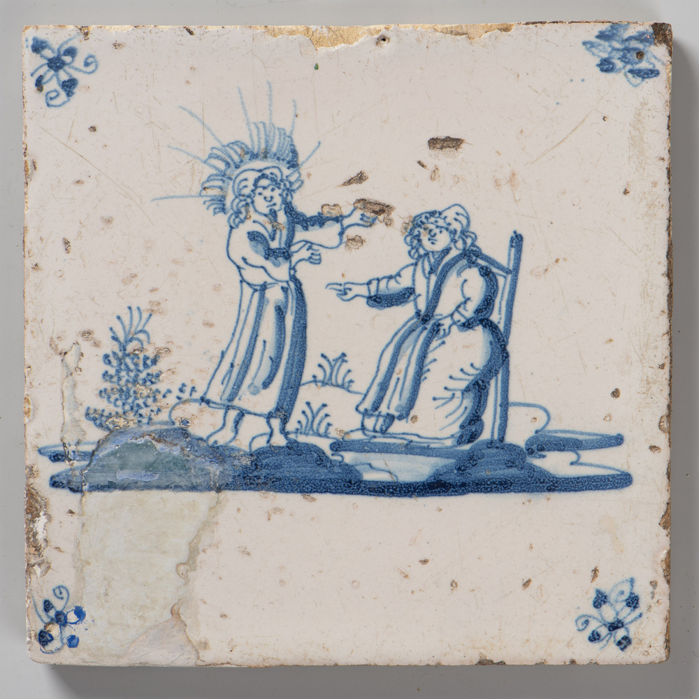 tegel van aardewerk met tinglazuur, voorstellende: h...