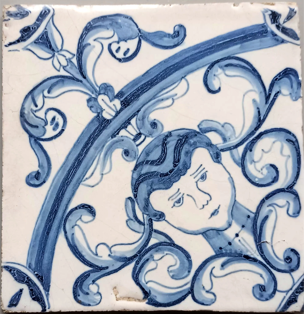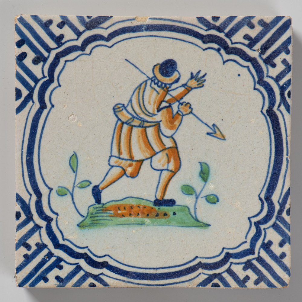 tegel van keramiek met tinglazuur, voorstellende: ja...