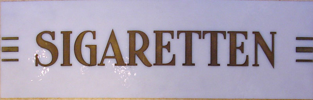 Reclamebord van glas met de tekst 'sigaretten' ca. 1...