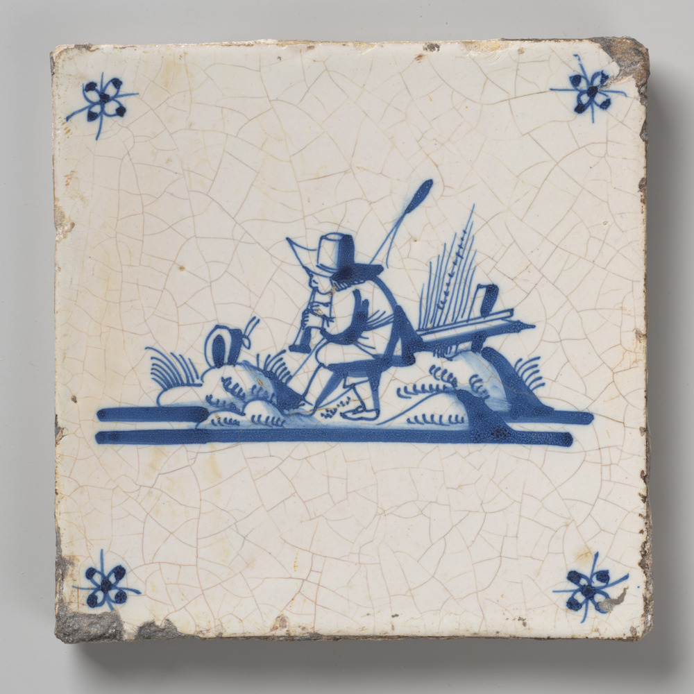 tegel van aardewerk met tinglazuur, voorstellende: h...
