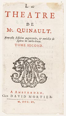 Titelprent van "Le Theatre de Monsr. Quinault ... To...