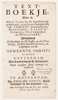 Titelpagina "Text-boekje, waer in alle de texten der...