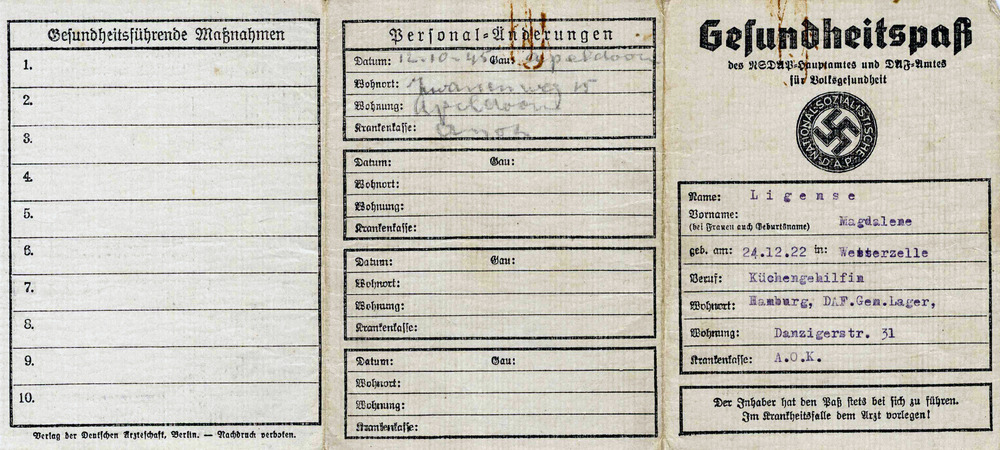 gezondheidsbewijs (Gesundheitspass) op naam van Magd...