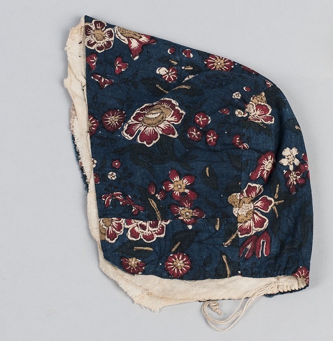 Sitsen meisjesmutsje, blauwe grond, onderdeel van gr...