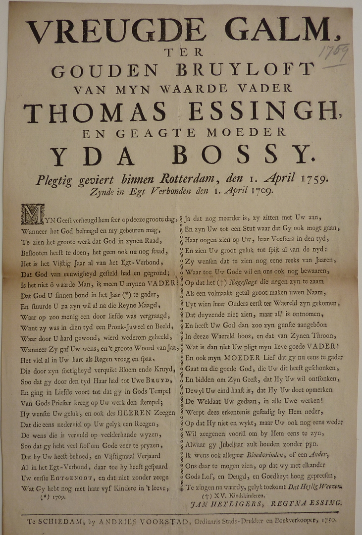Op de gouden bruiloft ... Jakobus Versluysen, ... Ma...