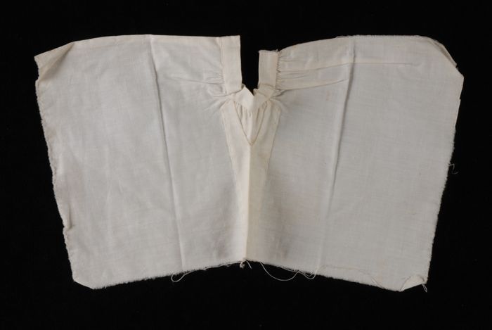 Miniatuur achterpand van een rok (?) van wit katoen ...