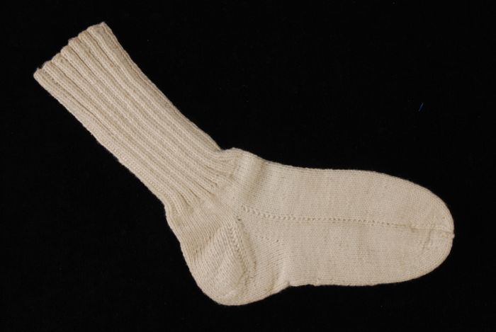 Kindersok gebreid van crèmekleurig katoen, oefening