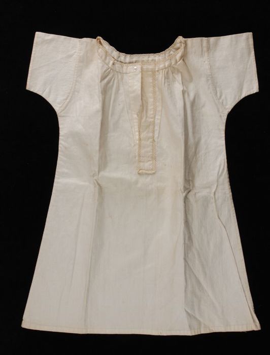 Miniatuur hemd met schouderpas van wit katoen, oefening