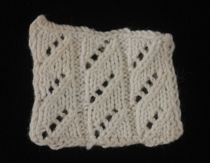 Kleine breiproef van wit katoen in ajoursteek, oefening