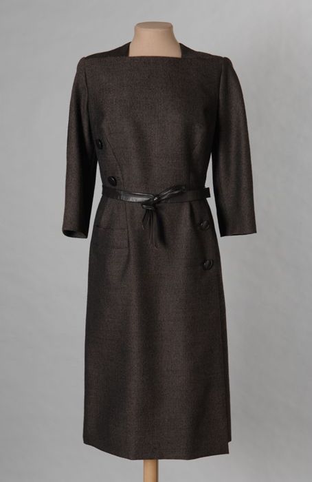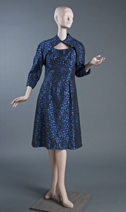 Knielange mouwloze japon (1) met korte bolero (2), p...
