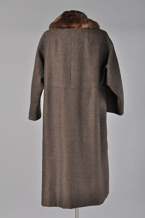 Kuitlange mantel van zwart-bruine wollen tweed en kr...