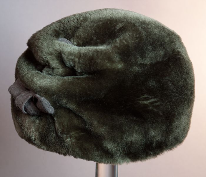 Ronde bontmuts van zacht kort bruin bont, deels gepl...