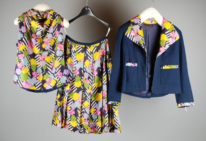 Driedelig ensemble, blouse, rok en jasje, donkerblau...