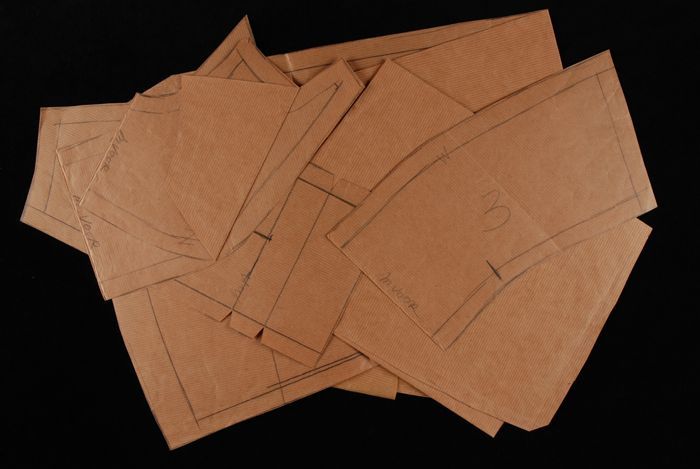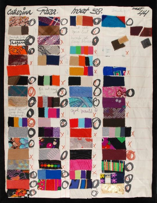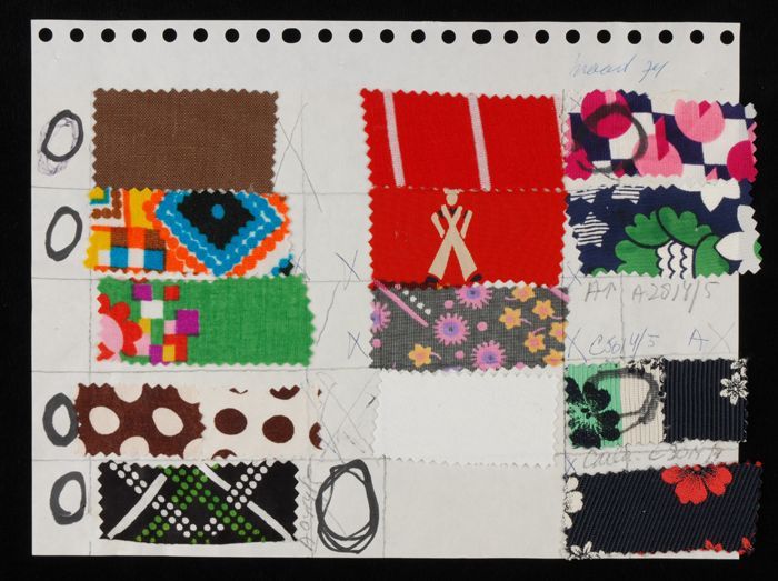 Stalenblad met opgeplakte stoffen van de collectie v...