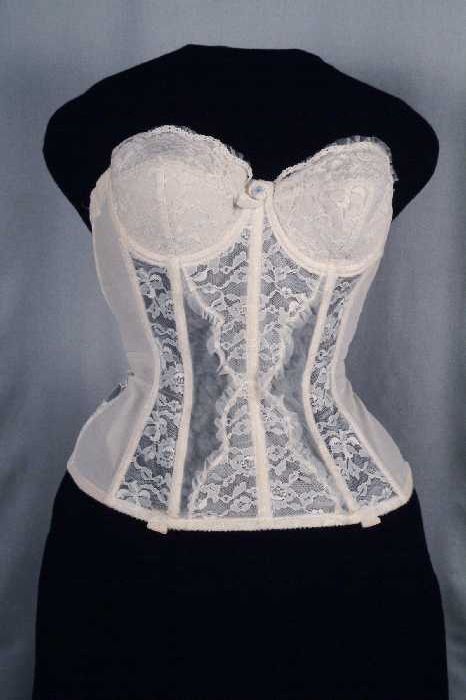 Strapless korsetlijf van wit elastisch nylon met kan...
