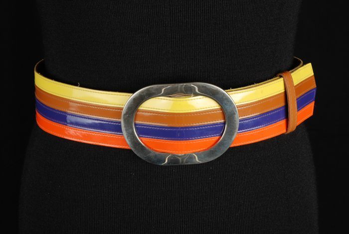 Brede ceintuur van vier banen oranje, paars, bruin e...
