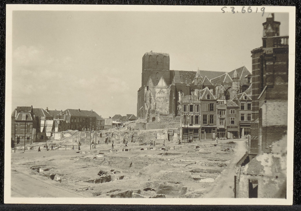 Ruïne Stikke Hezelstraat met ruïne St. Stevenskerk, ...