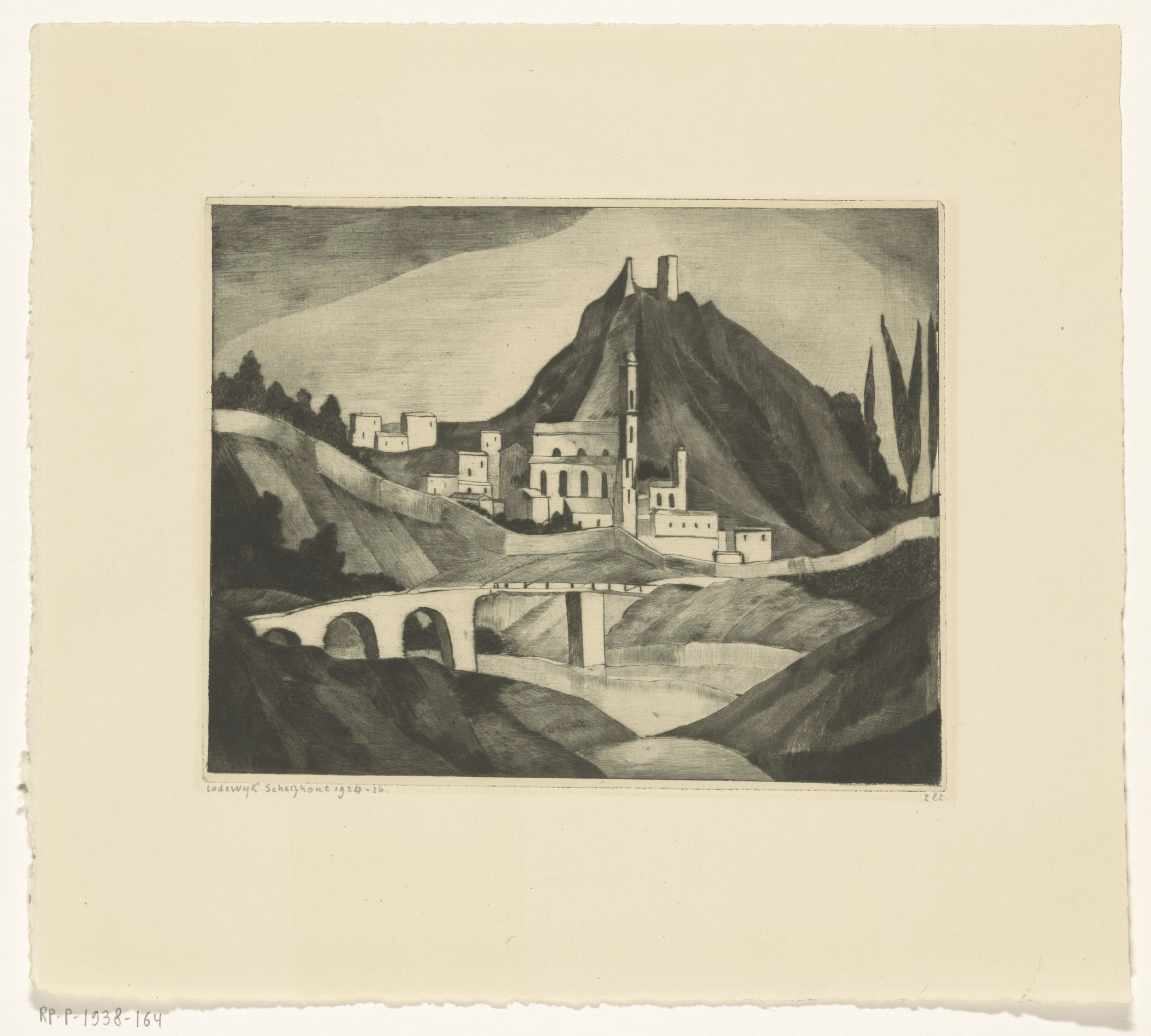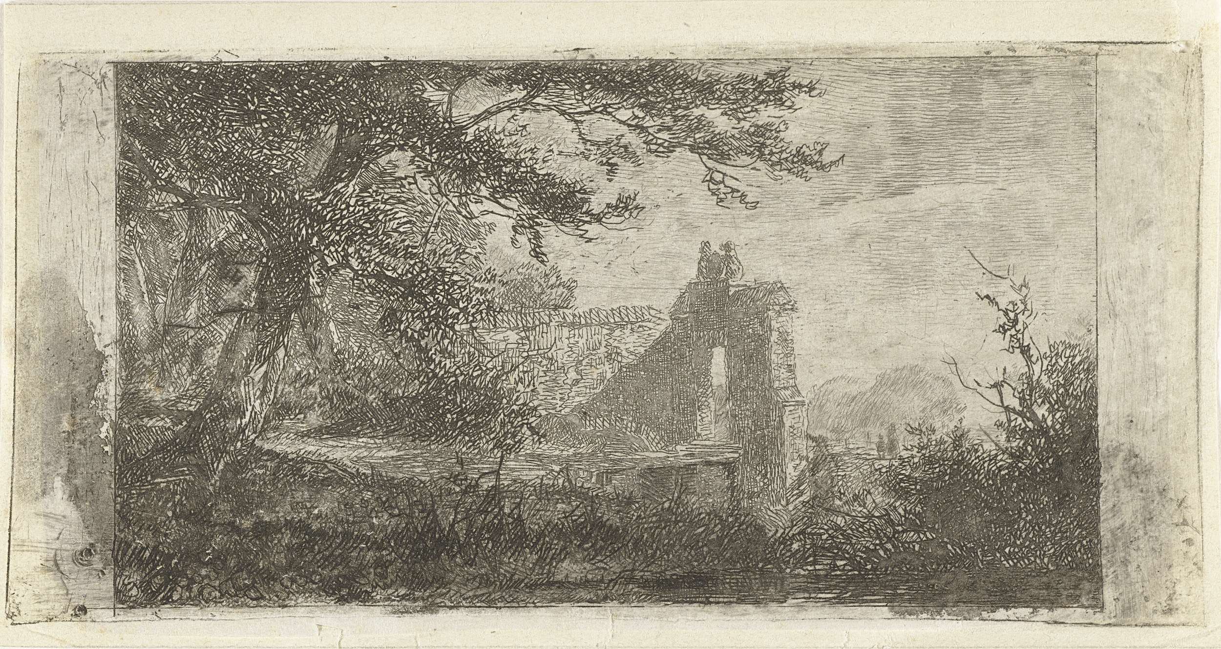 Landschap met poortgebouw