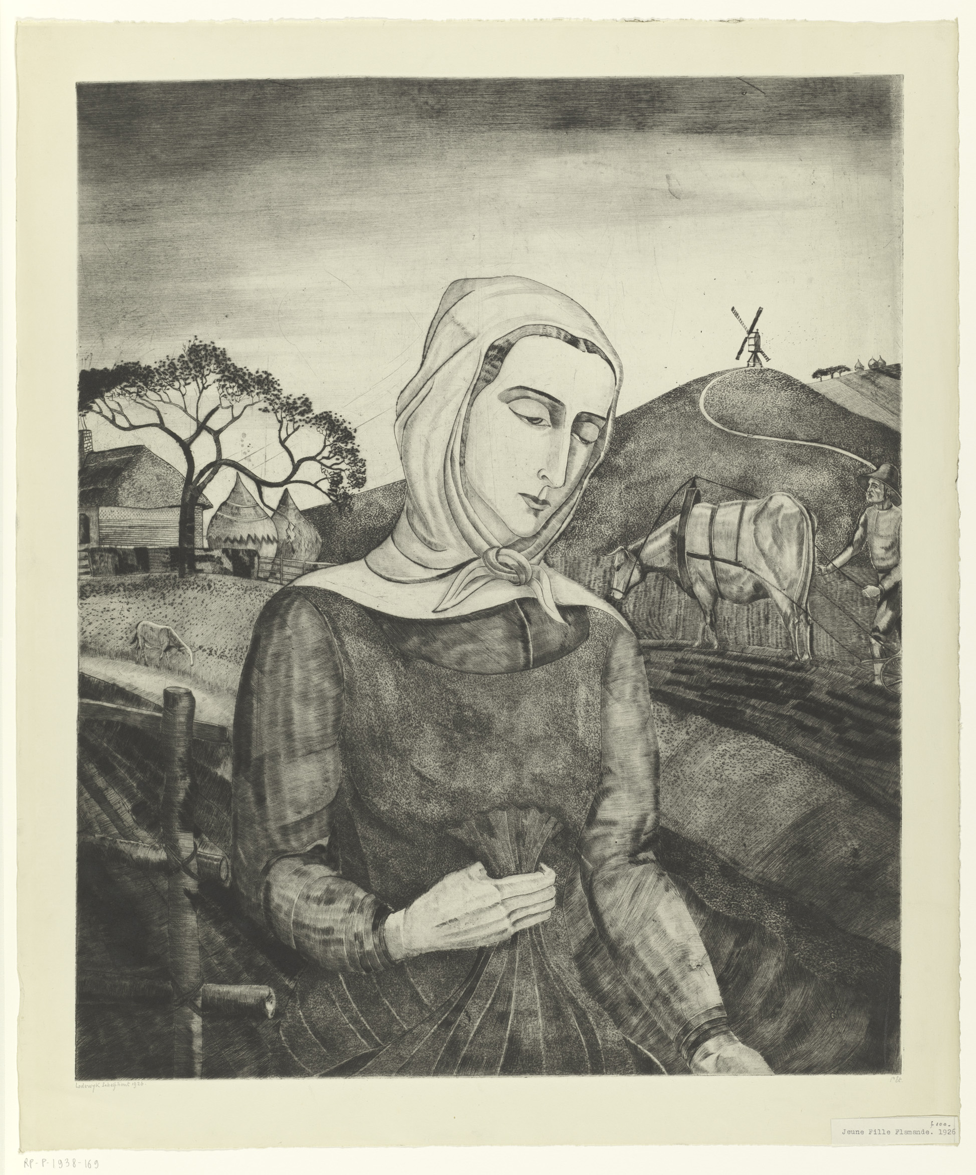 Vlaamse boerin in een heuvellandschap