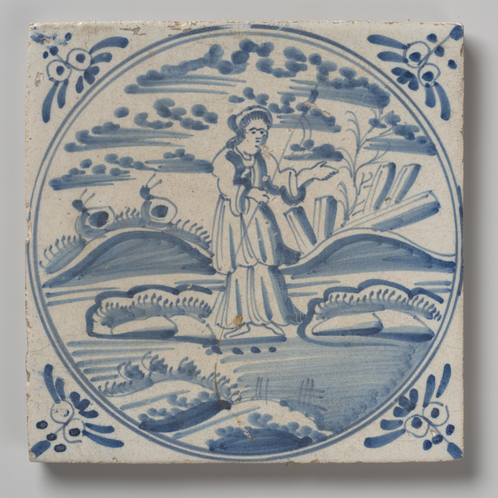 tegel van aardewerk met tinglazuur, voorstellende: h...