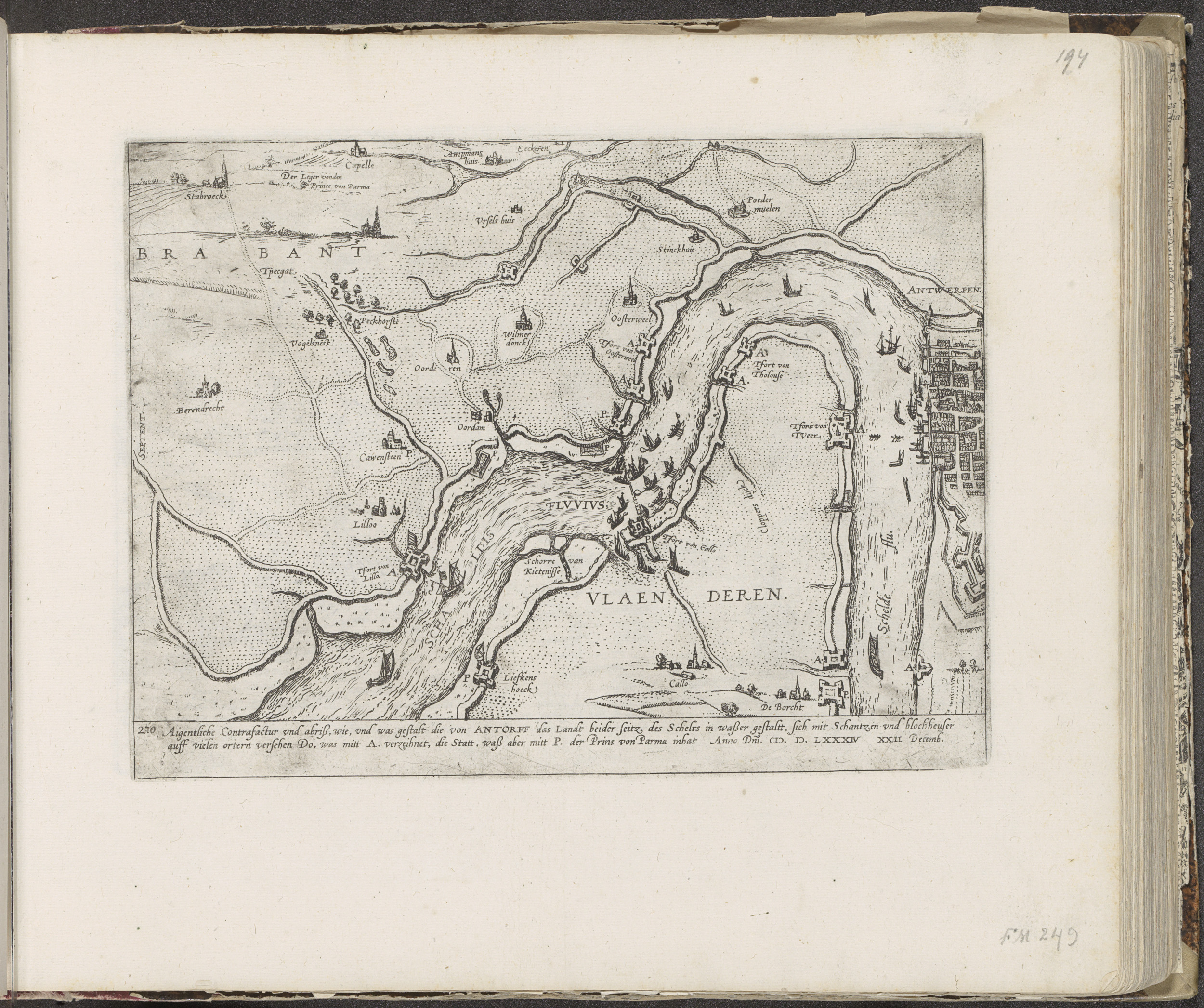 Kaart van de fortificaties langs de Schelde, 1584