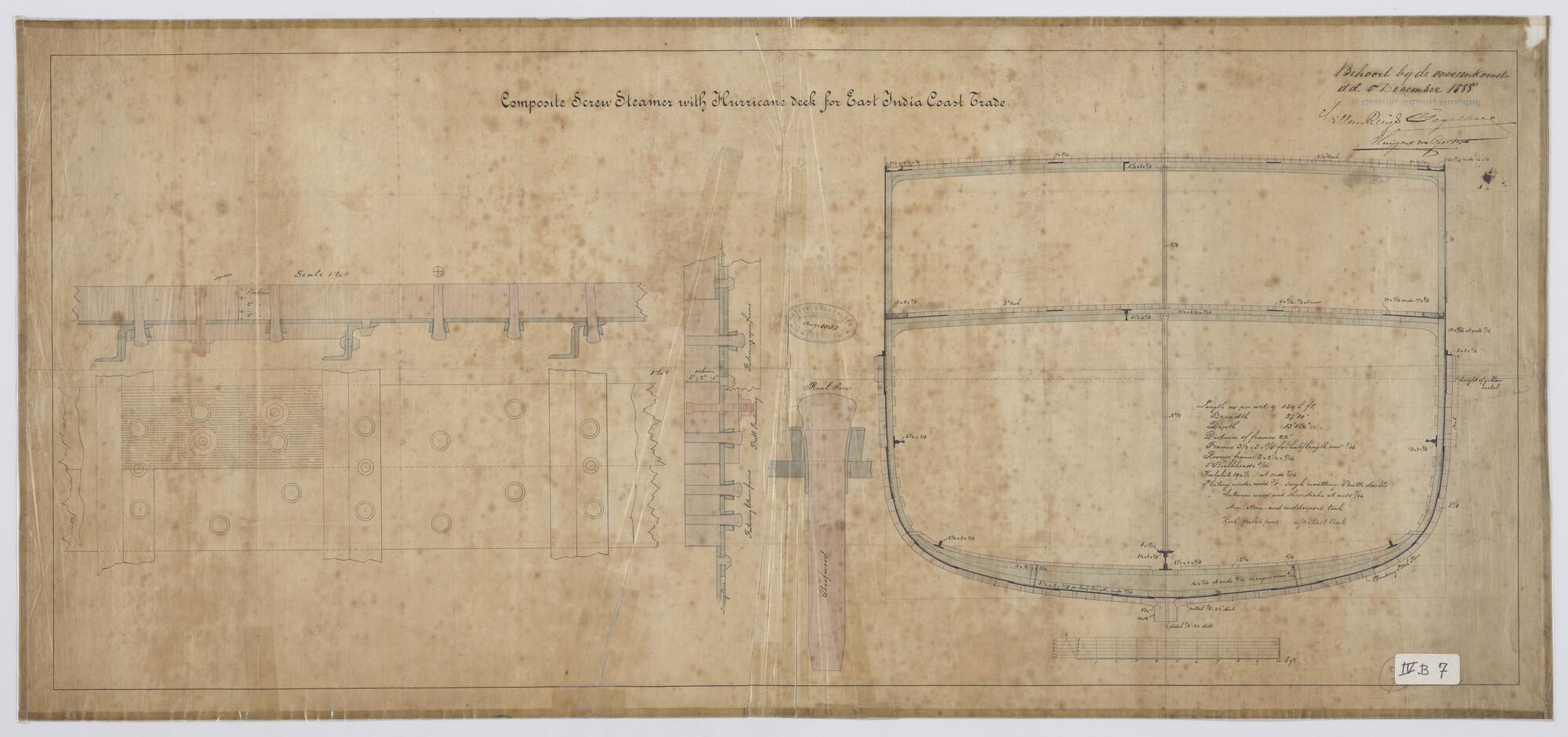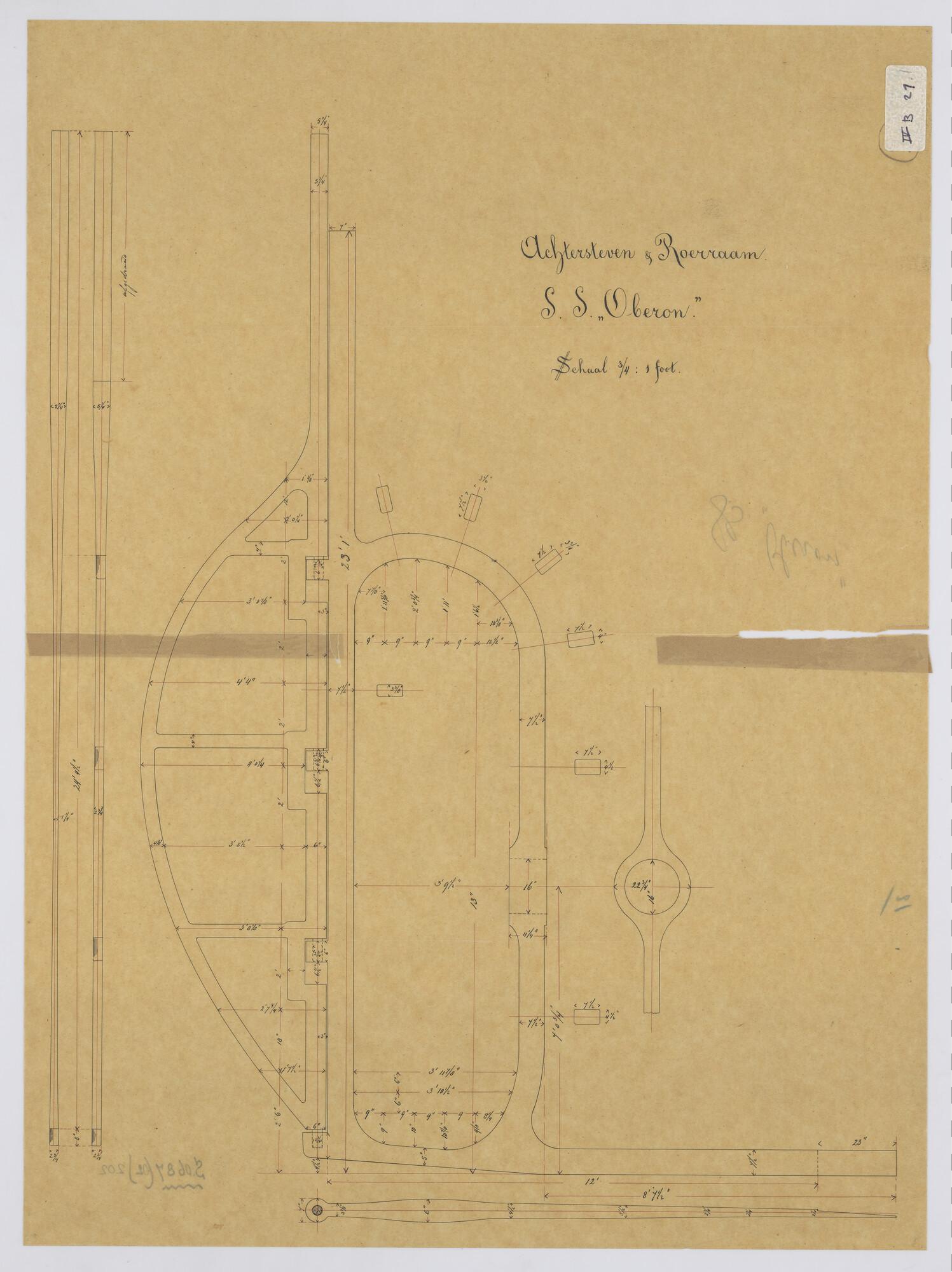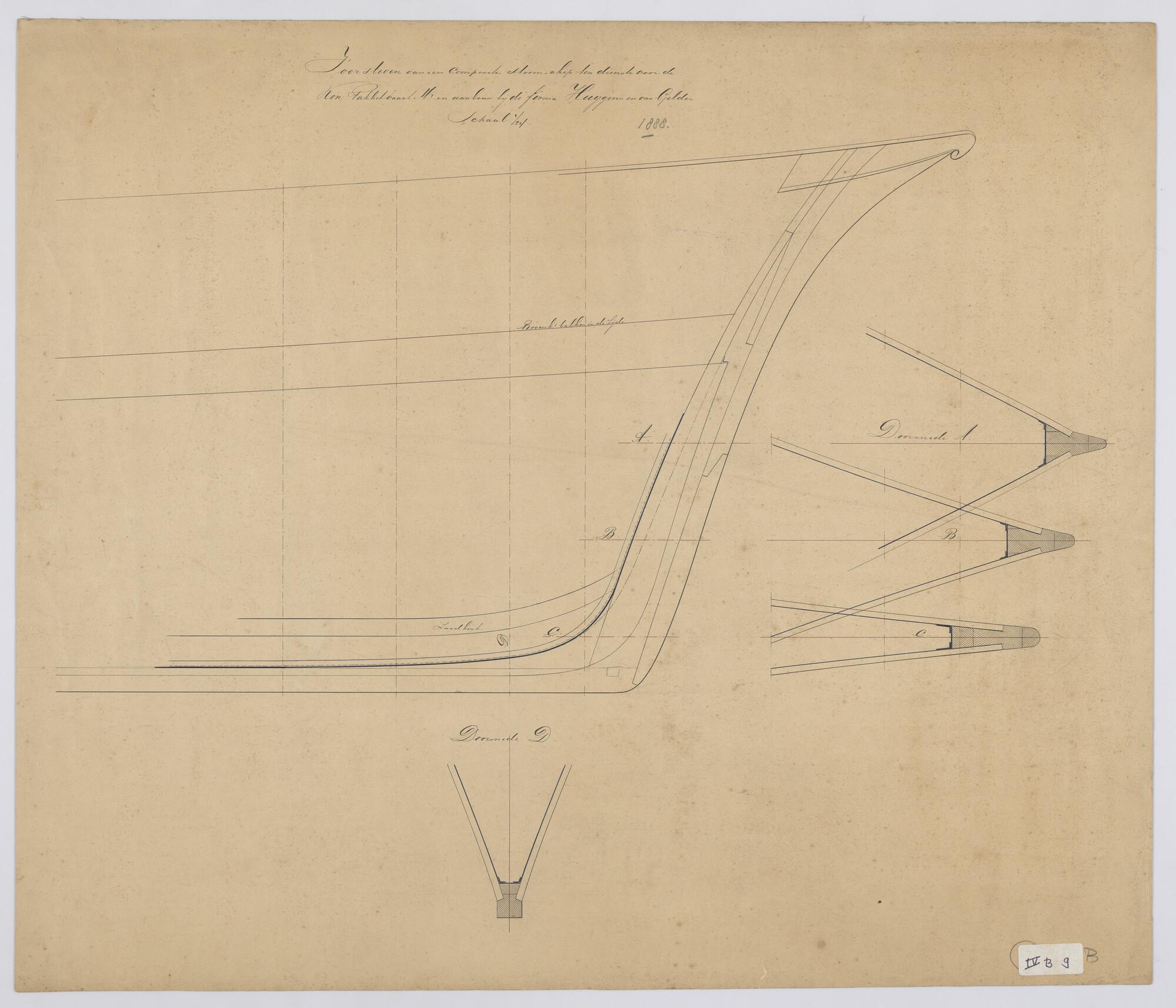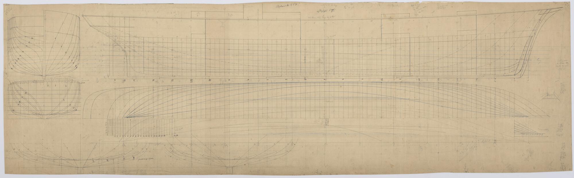 Lijnenplan van verticalen, schroefstoomschip 'Oberon'