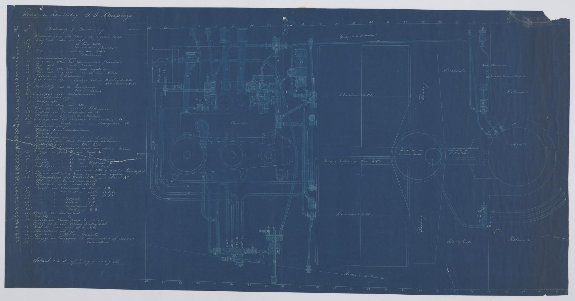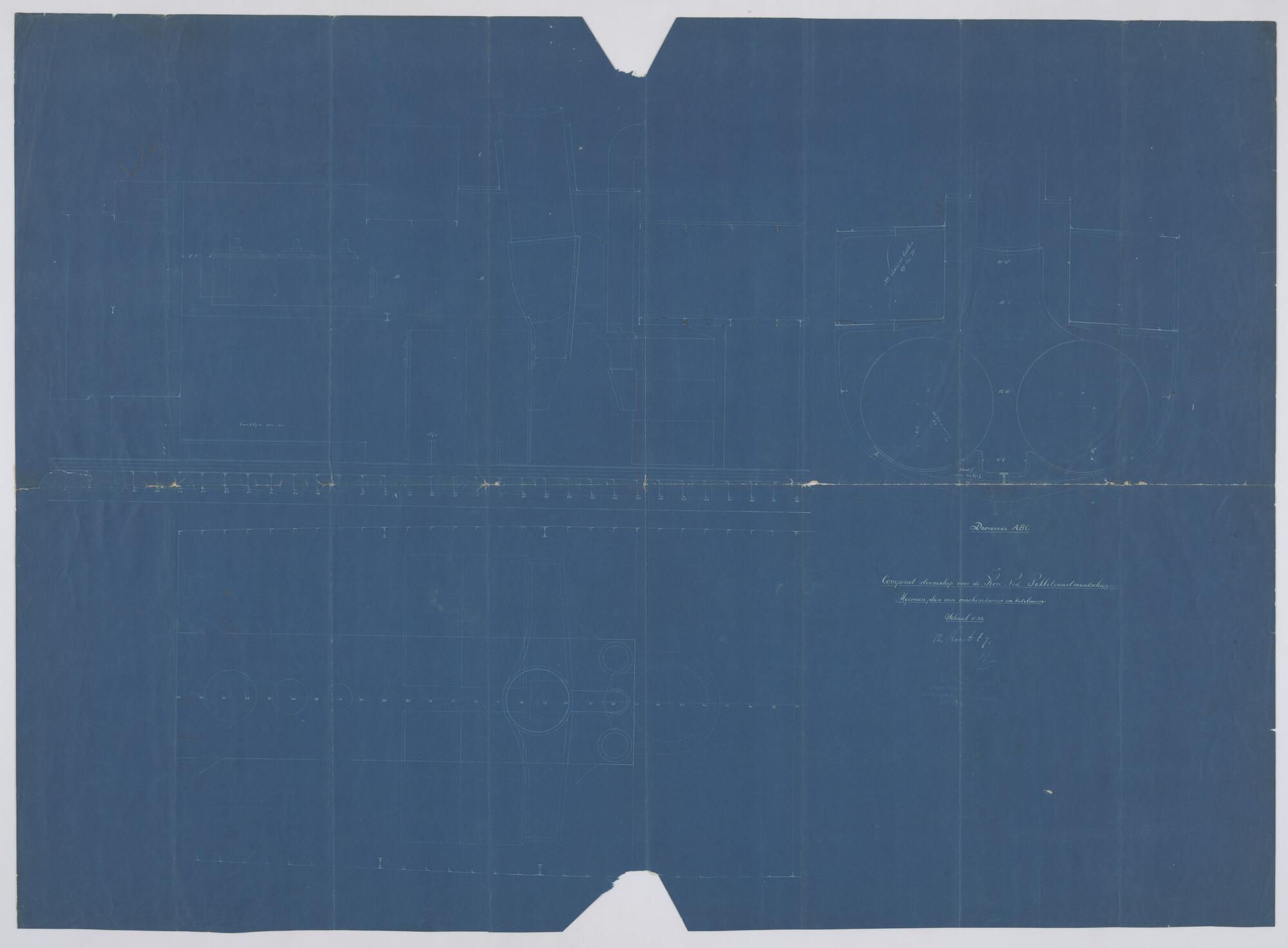 Bovenaanzicht machinekamer en ketelruim van de schro...