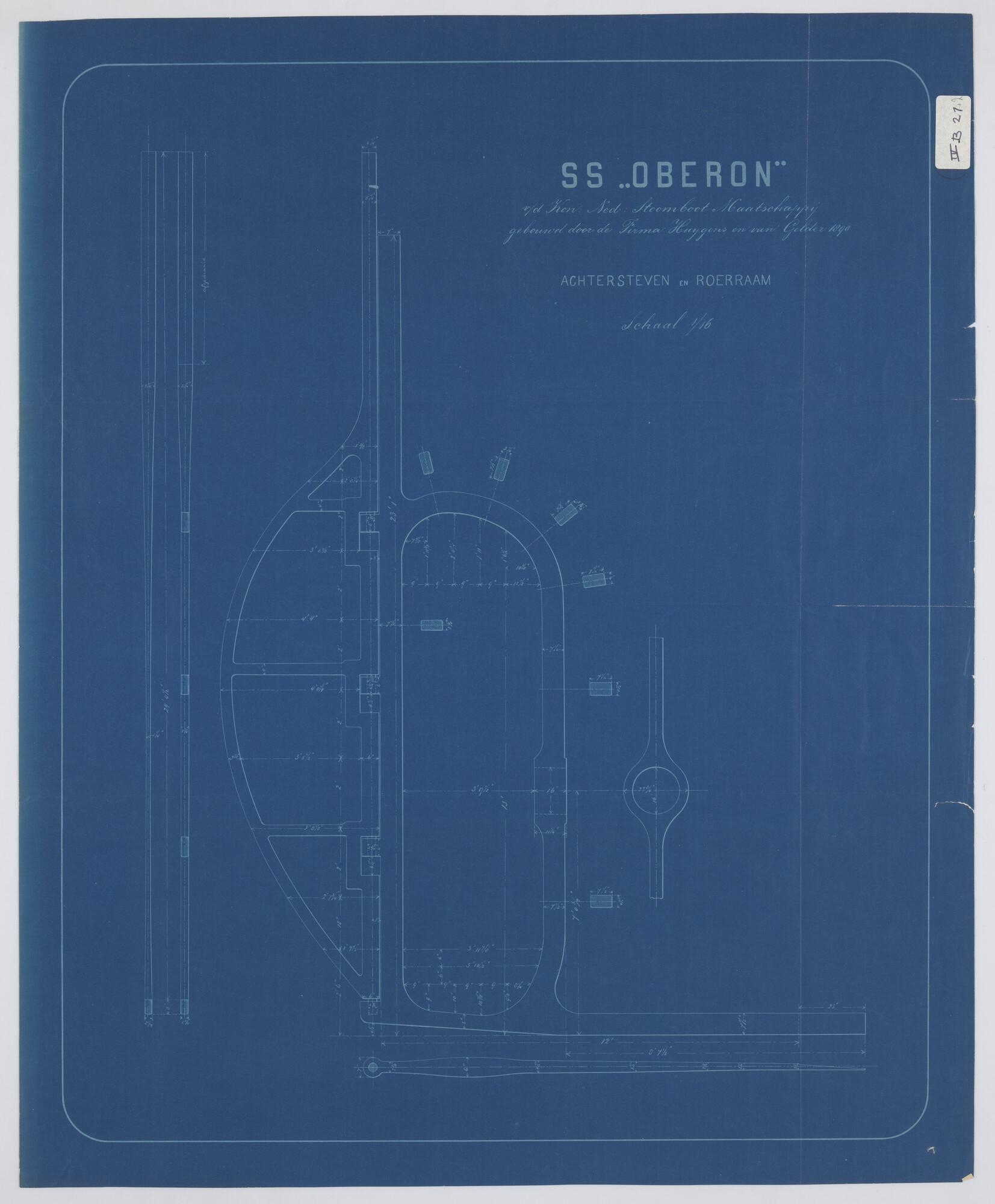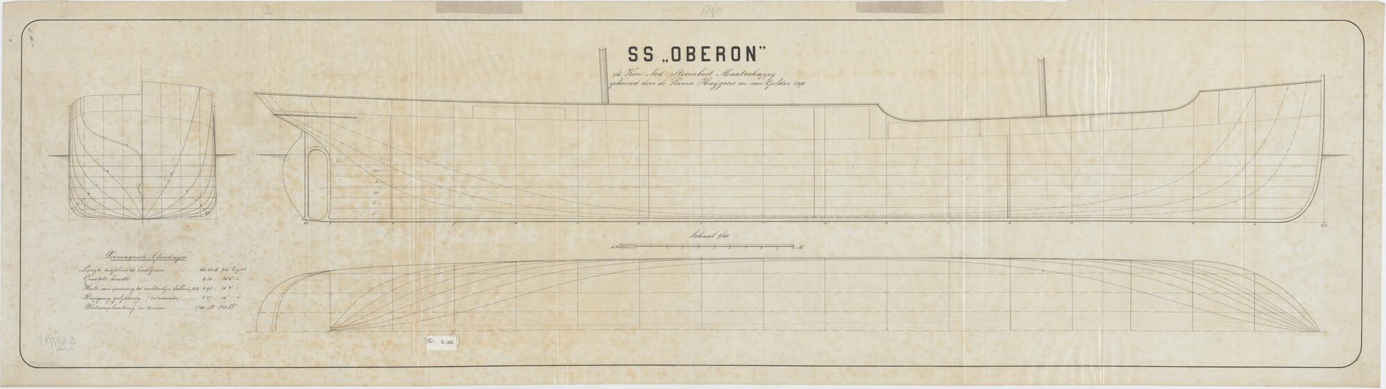 Lijnenplan van schroefstoomschip 'Oberon'